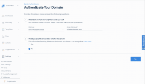 ドメイン認証は、SendGridのDomain Authentication(Authenticate Your Domain)のダイアログに従い、Install DNS Recourdsまで進み、登録するDNS情報を入手して下さい。