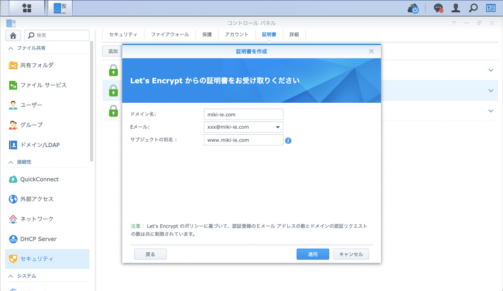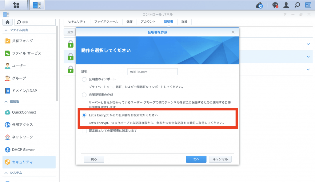 しかも、簡単なSSL証明書は、無料で簡単に作成できるようになりました。Synology無料SSL証明書導入
