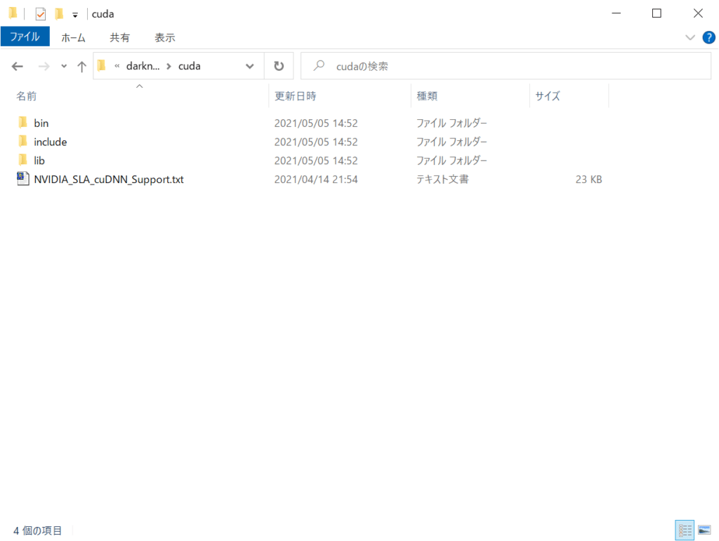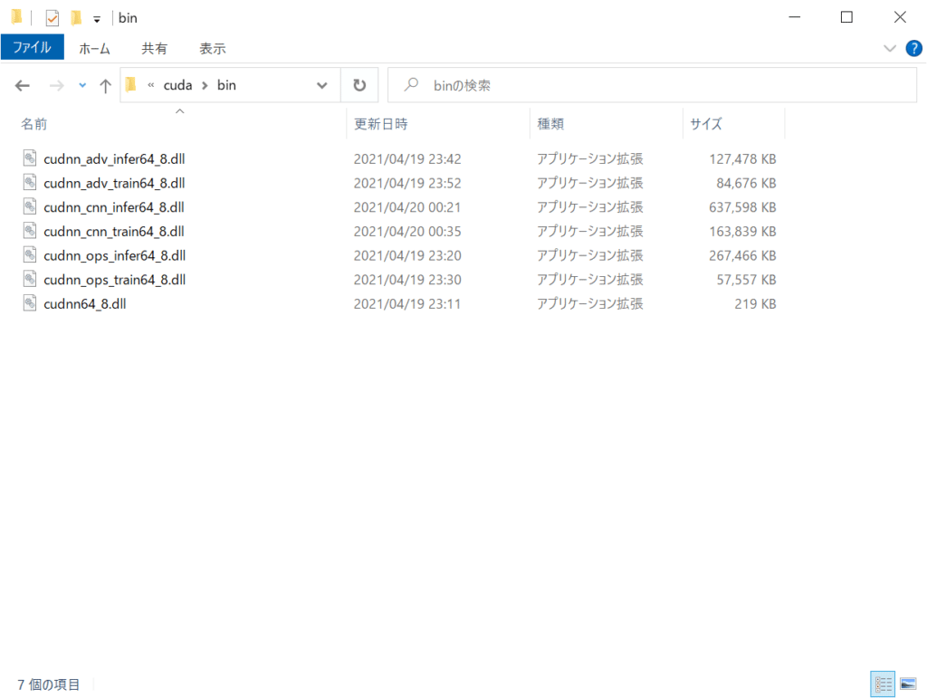 https://developer.nvidia.com/rdp/cudnn-archive からダウンロード - ダウンロードしたファイルをCUDAイントールフォルダーへコピー(/移動)