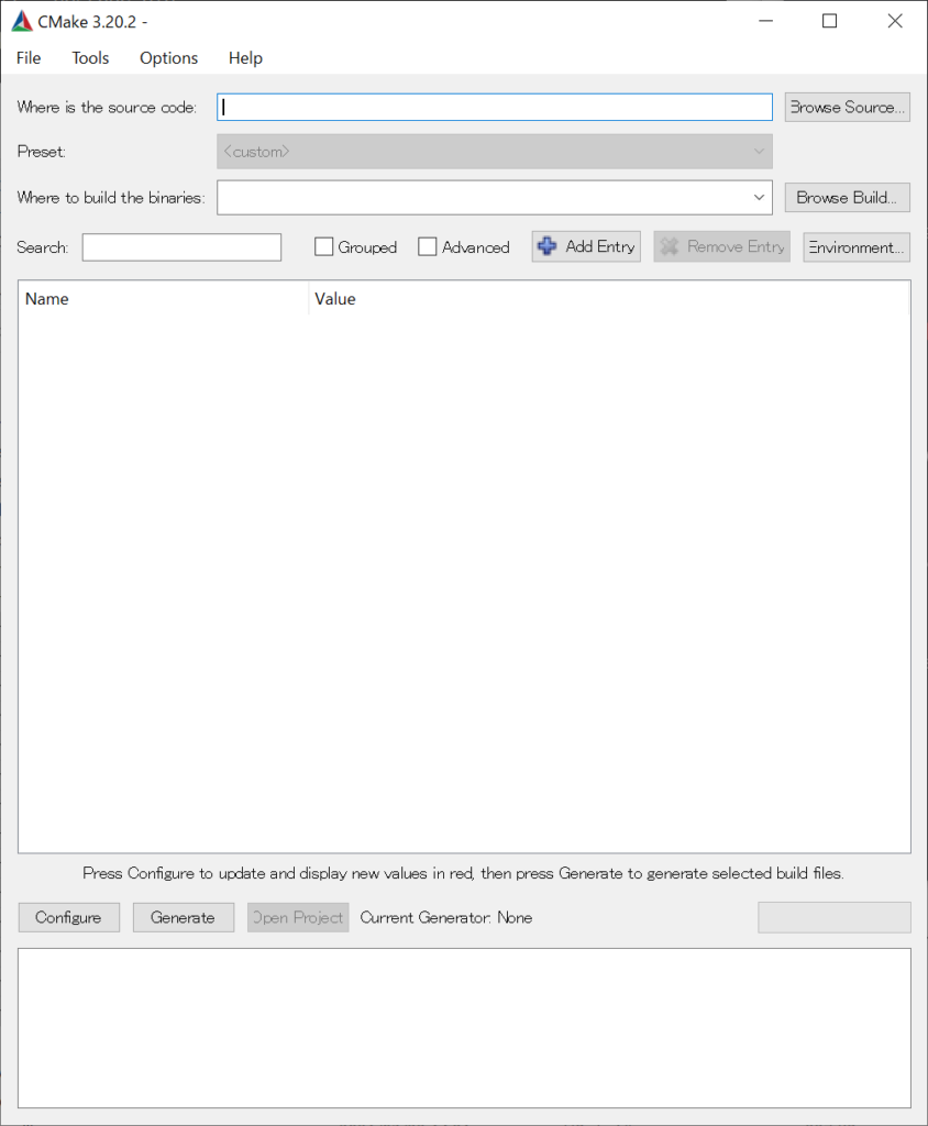 - CMake(gui)を開きます